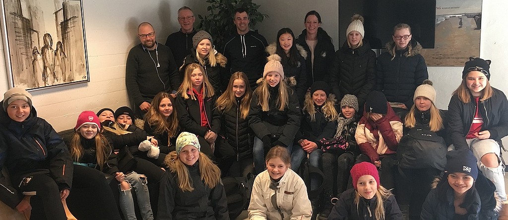 Tjejerna spelade, åt och var otroligt taggade. Sedan var det lite jobbigt att gå de 30 minuterna från färjan till anläggningen, väl där blev de indelade i sina rum. Inga sura miner där utan glada sprang de in i rummen och bytte om till första träningen. Den började med 2km jogging i minusgrader och snålblåst. Det var väl lite jobbigare än vad töserna tänkt sig. Och som om inte det var nog så var det en riktigt hård träning med fysik och kondition, toppat med en joggingtur tillbaka igen. Ingen klagade på att det var jobbigt, vädret fick sig några välförtjänta klagosånger dock. Efter en Yogasession av duktiga Gunilla var det jätte god middag och lite lekar. Helst ville alla tjejerna tränga ihop sig i ett rum och parta!! Fnitter och spring hela kvällen.