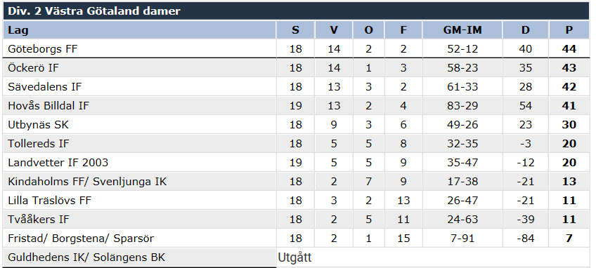I tabellen ligger dom en poäng efter ledarna Göteborgs FF, så hoppet lever om en serieseger och en plats I division 1.