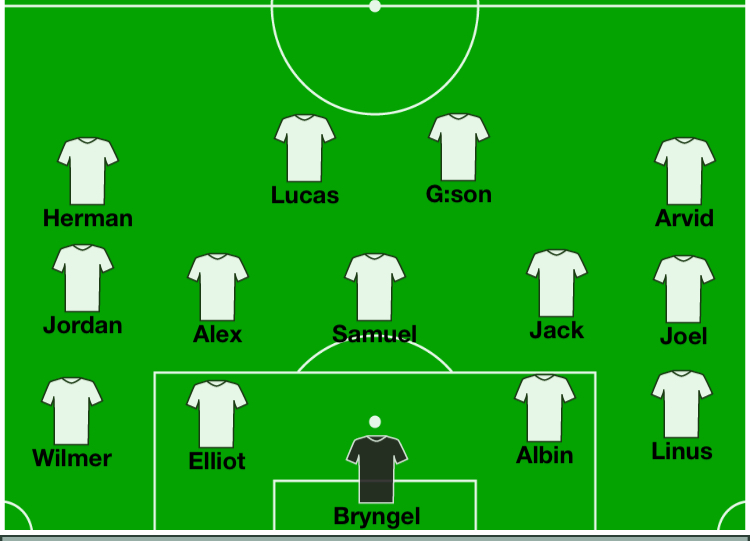 Så här ser laguppställningen ut imorgon. Samling kl 18.00 på Prästängen. Matchstart 19.00.